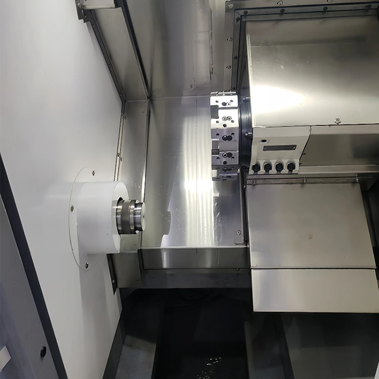 ● अभिनव बेड डिजाइन: झुकाएको 60° केन्द्रीय काठीले वर्कपीसलाई अपरेटरको नजिक ल्याउँछ। राल-कास्ट बेडले उच्च कठोरता, कम्पन प्रतिरोध, र चिकनी चिप हटाउने सुनिश्चित गर्दछ।